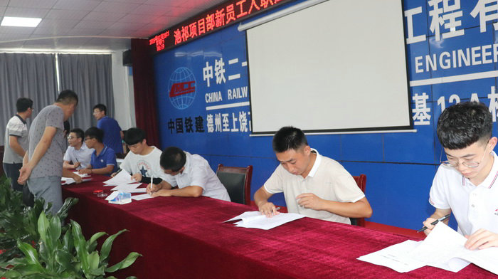 首先,項(xiàng)目部經(jīng)理張一平向新員工介紹了池祁項(xiàng)目部基本情況,當(dāng)前項(xiàng)目施工部署及工作推進(jìn)情況。介紹了項(xiàng)目部將鐵道兵文化與當(dāng)?shù)?ldquo;徽商”文化緊密結(jié)合,充分發(fā)揮逢山開路、遇水架橋精神,推動(dòng)項(xiàng)目穩(wěn)步發(fā)展。在追憶曾經(jīng)的艱苦條件時(shí),要求新學(xué)員做好學(xué)校人向社會(huì)人轉(zhuǎn)變的心態(tài),主動(dòng)向老同志學(xué)習(xí),設(shè)定工作目標(biāo),用一至兩月滿足副手狀態(tài),勇于擔(dān)當(dāng),積極為項(xiàng)目做貢獻(xiàn),期望新學(xué)員在一年見習(xí)期后化繭成蝶、迅速成才。