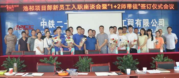 本網(wǎng)安徽黃山7月29日訊(通訊員 宗意景)28日下午,中鐵二十一局三公司池祁項(xiàng)目部新員工入職座談會(huì)暨“1+2師帶徒”簽訂儀式在池祁項(xiàng)目部會(huì)議室舉行,項(xiàng)目部領(lǐng)導(dǎo)班子成員、各部室負(fù)責(zé)人及2019年全體新員工參加了座談會(huì)。