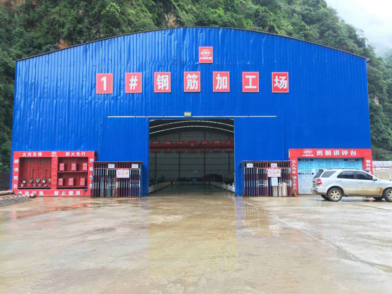 在項目臨建過程中,項目部根據(jù)《云南省高速公路施工標準化技術指南》,統(tǒng)一制定項目駐地、拌合站、鋼筋加工場、預制梁場等建設標準化方案,進行精心研究和改進,做到現(xiàn)場生產(chǎn)、生活區(qū)域格局層次化、配置標準化,職工工作和生活并舉兼顧。