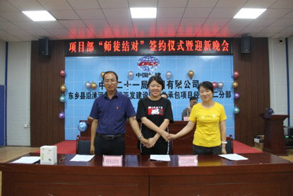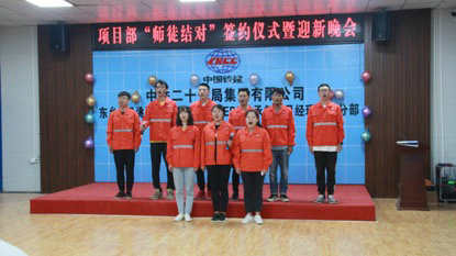 8月1日,中鐵二十一局四公司東鄉(xiāng)縣沿洮河經(jīng)濟(jì)帶開發(fā)建設(shè)項(xiàng)目部舉辦“師徒結(jié)對”簽約儀式暨迎新晚會。