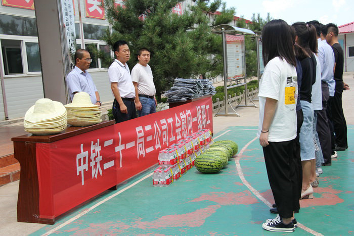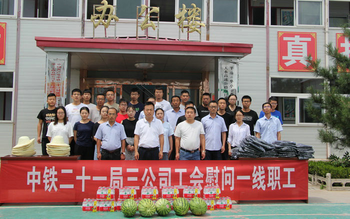 此次慰問給一線施工人員帶來了絲絲的溫暖,鼓舞了士氣,激發(fā)了大家奮發(fā)工作的熱情。下午魏惠民代表公司慰問平天項(xiàng)目全體職工,為項(xiàng)目職工送上西瓜、飲用水、遮陽帽等防暑物品,并為職工發(fā)放工會定制的工服。