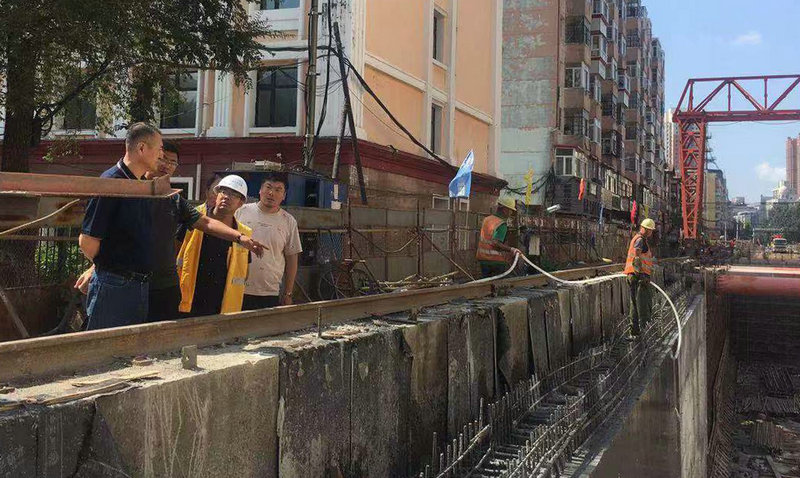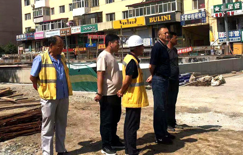 烈日當頭、暑熱難耐。廖淳一行看到烈日炎炎下的工人們正在熱火朝天的進行U型槽墻體摸板加固、樁板墻澆筑墻身混凝土施工作業(yè),現(xiàn)場一派繁忙,對大家的辛勤付出表示慰問。