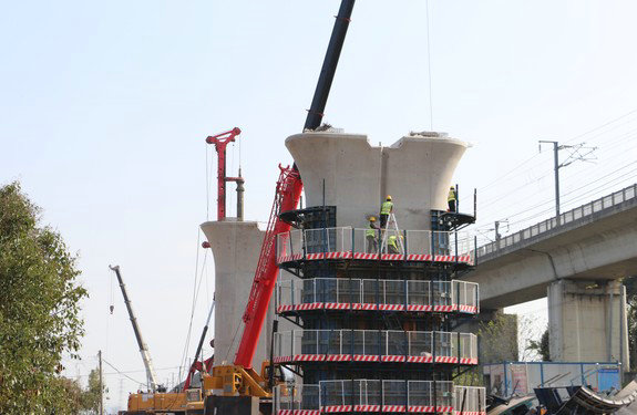 圖2:東坡特大橋施工大干現(xiàn)場(chǎng)