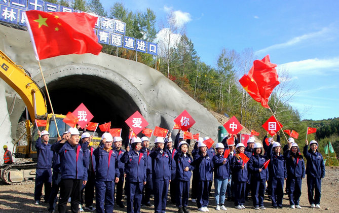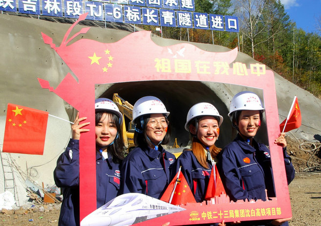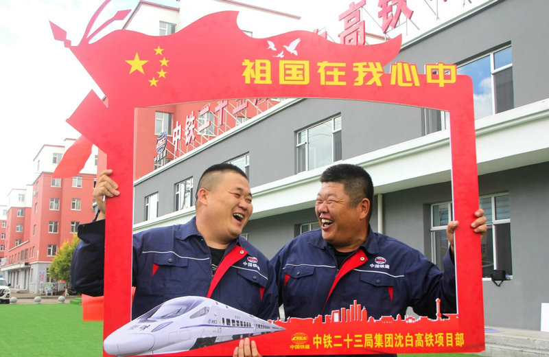 連日來,在沈白高速鐵路建設工地面對鮮紅的國旗,堅守施工生產一線的廣大參戰(zhàn)員工心潮澎湃、熱血沸騰,為祖國的日益強大倍感驕傲和自豪。隧道洞口、鉆機旁、辦公區(qū)廣場,幸福燦爛的笑容,定格在精心設計的五角星造型里,在充滿喜悅的“祖國在我心中”主題相框內,在精神抖擻整齊劃一的隊列中,展示了中國鐵建員工團結向上的良好精神風貌。