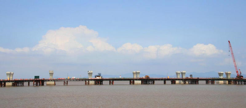 濱?;ネㄈL9705米,由主線拼寬橋和4座金塘大橋拼寬橋和8座匝道橋組成,工藝復(fù)雜、工序繁鎖,且3次上跨、4次下穿日均車流量達6萬輛的金塘大橋,海上作業(yè),施工難度大,潛在的安全隱患多,備受各方高度關(guān)注。在主線拼寬橋施工中,該項目部推出棧橋先行、樁基與承臺緊隨、墩身“壓軸”的分步驟、工序銜接緊密、多點擊破、全力合圍等“組合拳”,為贏得施工主動、圓滿完成主線拼寬橋80座橋墩發(fā)揮了作用。與此同時,項目部實行班子成員分工負(fù)責(zé)制,責(zé)、權(quán)、利與安全質(zhì)量、進度產(chǎn)值和環(huán)保掛鉤,獎罰嚴(yán)明,對履職不力、責(zé)任心不強者,調(diào)整其崗位,對其他管理人員也如此。其次,在每季度勞動競賽總結(jié)評比中,按照競賽方案,組織部門負(fù)責(zé)人以上領(lǐng)導(dǎo)對各施工隊進行打分,排在前5名的單位給予重獎,凡完不成任務(wù)者,將受到重罰。