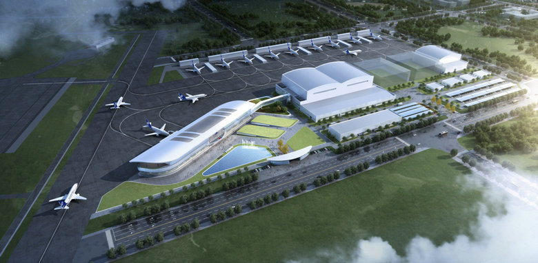 中鐵十八局集團(tuán)建安公司承建的中國(guó)商飛江西生產(chǎn)試飛中心項(xiàng)目交付中心效果圖
