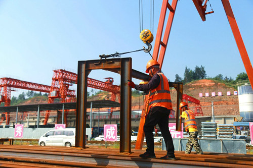 (譚帥)“確認(rèn)夾板掛裝牢固,準(zhǔn)備起吊,速度一定要慢,確保安全”,5月18日,渝懷鐵路涪秀二線中鐵一局鋪架項(xiàng)目的釘聯(lián)生產(chǎn)區(qū)內(nèi)迎來了新“神器”。當(dāng)天上午9時(shí)許,隨著兩臺(tái)小行吊設(shè)備的緩緩滑動(dòng),一節(jié)長(zhǎng)25米的鋼軌成功起吊,隨后工人們十分順利地開始鉆孔作業(yè)工序。