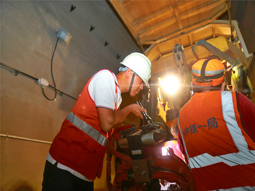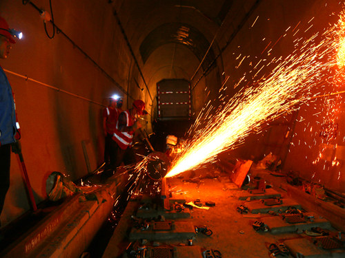 (譚帥)7月6日清晨7時許,在渝懷鐵路涪秀二線在建的新大田坳隧道里,隨著一臺移動閃光焊軌機噴出的一道道火花,兩根長500的鋼軌牢牢地焊接到了一起,標(biāo)志著該條鐵路涪陵至中嘴段無縫線路焊軌、鎖定施工接近尾聲。