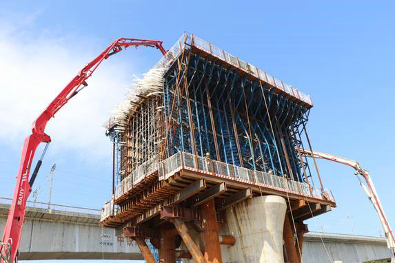 項目東坡特大橋連續(xù)梁0#段正在澆筑施工