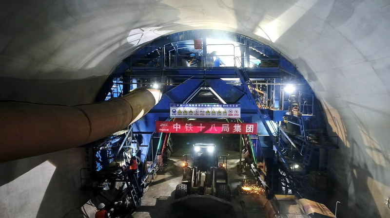 中鐵十八局集團隧道公司負(fù)責(zé)施工的渝湘高鐵重慶至黔江段站前6標(biāo)李家灣1號隧道貫通現(xiàn)場(田緣圓 攝)