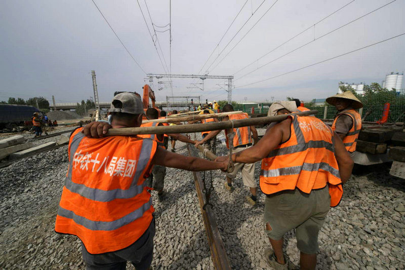 中鐵十八局集團(tuán)五公司建筑公司黨委書記胡興光介紹,既有線施工地下電纜多,項(xiàng)目部在鐵路線30米范圍內(nèi)施工時嚴(yán)格按照規(guī)程挖探溝對線纜位置進(jìn)行確認(rèn)并進(jìn)行保護(hù),30米以外區(qū)域找相關(guān)單位進(jìn)行確認(rèn)、遷改,確保不因破壞電纜影響行車安全。因前期征地拆遷影響了正常工期,用于正常施工的有效工期短,專業(yè)工序多,涉及多個不同作業(yè)單位,空間交叉作業(yè)多,互相干擾,互為制約,為了理順這些,現(xiàn)場調(diào)度要精要細(xì),安全管控要準(zhǔn)要嚴(yán),24小時兩班倒連軸轉(zhuǎn),機(jī)停人不歇,職工每天工作時間達(dá)19小時。