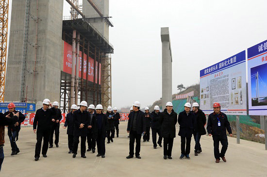 圖五、參加儀式的領(lǐng)導來賓參觀主橋施工現(xiàn)場