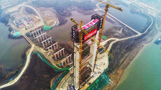 大橋北主塔封頂,為大橋早日建成通車奠定堅實基礎(chǔ)。