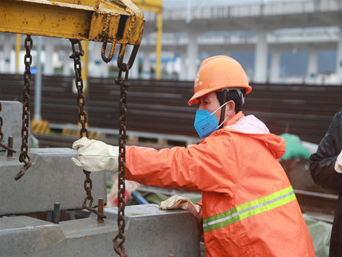 (譚帥)“生命重于泰山,疫情就是命令,防控就是責(zé)任,我們要牢固樹立復(fù)工即為決戰(zhàn)的意識,以萬眾一心的態(tài)度,眾志成城的精神,爭分奪秒的干勁,精準(zhǔn)施策,重拳出擊,堅(jiān)決打好疫情攻堅(jiān)戰(zhàn),為涪秀二線鐵路2020年度的圓滿收官而不懈努力……”2月15日,重慶東南部的黔江城內(nèi)陰雨綿綿,冷風(fēng)陣陣,然中鐵一局新運(yùn)涪秀二線項(xiàng)目部的鋪架基地里卻一派熱火朝天。當(dāng)天下午14時(shí),項(xiàng)目負(fù)責(zé)人陳福俊正在組織全體返崗人員進(jìn)行復(fù)工“戰(zhàn)役”前的總動員。