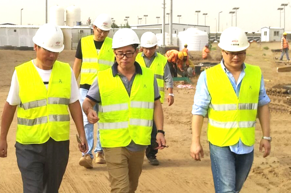 4、中鐵十八局集團沙特公司黨工委書記、總經(jīng)理陳德斌(右二)在現(xiàn)場辦公(徐名峰 伍振 攝)