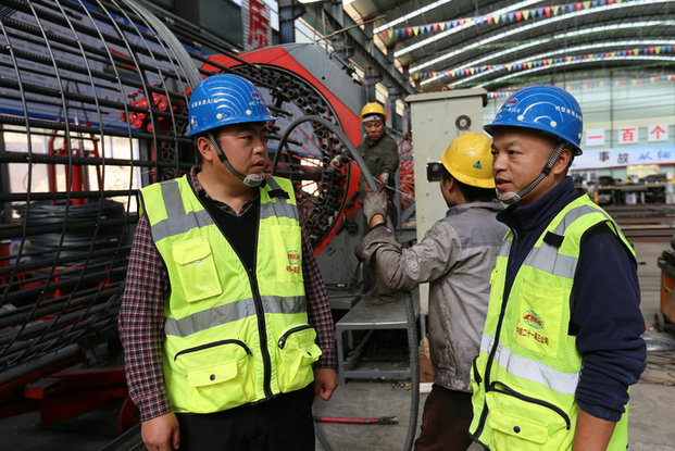圖為楊鵬濤(左)在檢查鋼筋加工廠生產(chǎn)情況 說起建設(shè)拌合站的難度,楊鵬濤深有感觸。工地沒電、沒水,他和兩名老職工、兩名民工,每天早晨6點(diǎn)半吃完早餐,就帶著兩瓶開水上工地,晚上十一、二點(diǎn)才回項(xiàng)目部,在工地吃了兩個(gè)多月的盒飯。拌合站一開工就遇到梅雨季節(jié),為了趕工期,幾乎天天冒雨作業(yè)。下雨時(shí)就打傘或穿雨衣指揮機(jī)械作業(yè),小雨不停施工,大雨就排水,在建設(shè)拌合站期間,楊鵬濤沒有離開過工地半步,他一個(gè)人就用壞了4把雨傘。高峰時(shí)共有14臺(tái)挖機(jī)、裝載機(jī)3臺(tái)、壓路機(jī)1臺(tái),自卸車7、8臺(tái)投入施工。他怕一離開現(xiàn)場,這么多機(jī)械車輛窩工,會(huì)給項(xiàng)目部造成損失。他說:“現(xiàn)場管理人員,在與不在工地,施工效率肯定是不一樣的。”