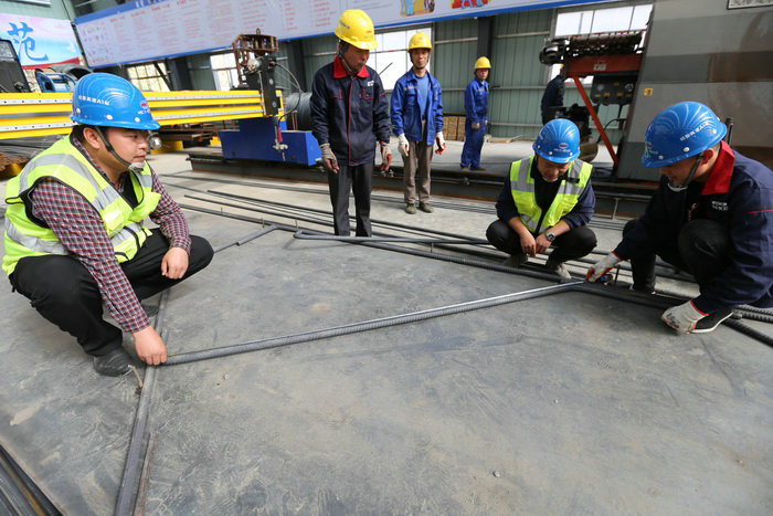 圖為生產(chǎn)蓋梁鋼筋籠骨架記者在現(xiàn)場看到,拌合站分為生產(chǎn)區(qū)、辦公區(qū)、生活區(qū),布局合理,場站建設(shè)標(biāo)準(zhǔn)高,辦公室、宿舍都安裝有空調(diào),還有工地浴室,晾衣棚,員工工作、生活環(huán)境舒適。在施工現(xiàn)場摸爬滾打20年的楊鵬濤深知,拌合站地處偏僻山區(qū),娛樂活動(dòng)相對較少難免寂寞,要讓員工有旺盛的精力投入到工作,一定要把伙食搞好,他在食堂管理上下足了功夫。在建拌合站廠房時(shí),就考慮到一、二工區(qū)、鋼筋加工廠人員在拌合站食堂就餐問題。除食堂應(yīng)有的硬件設(shè)施外,聘請技術(shù)精湛的川廚,既能做可口的川菜,又能做各種花樣的面食,滿足南方、北方人的口味。