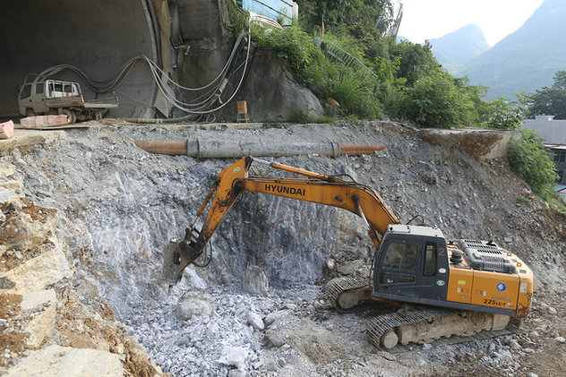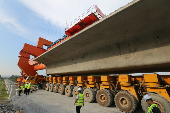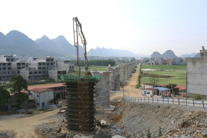 圖為運(yùn)梁車行駛在路基上在我國的西南地區(qū)廣西、貴州、云南等地,廣泛分布著一種特殊地質(zhì)結(jié)構(gòu)——喀斯特地質(zhì),這是大自然鬼斧神工的杰作。但在工程施工領(lǐng)域,喀斯特地質(zhì)被公認(rèn)為“世界級施工難題”。