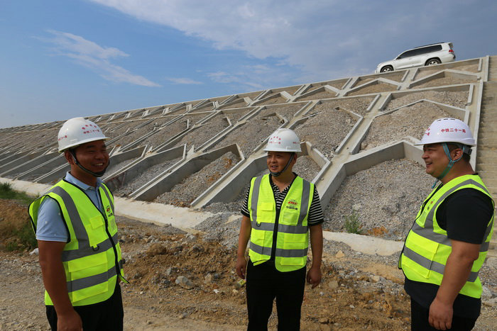 黃炬銀(左一)與常務(wù)副經(jīng)理衛(wèi)福星(中)、副經(jīng)理(何帥)在工地黃炬銀是一個(gè)對(duì)技術(shù)工作一絲不茍,尤其是對(duì)高難度工程,抓質(zhì)量抓規(guī)范施工親歷親為。他不顧五十多度的高溫,下到連續(xù)梁腹板內(nèi)對(duì)掛籃移動(dòng)、模板安裝、鋼筋焊接、鋼筋間距等檢查才放心。他說:“鋼筋焊接不牢、間距差一點(diǎn)都會(huì)對(duì)梁的受力結(jié)構(gòu)產(chǎn)生重大影響,絲毫馬虎不得。”2021年7月24日,紅渡紅水河特大橋連續(xù)梁順利合龍,這一全線重點(diǎn)控制工程獲得圓滿突破,業(yè)主專門給公司發(fā)去賀電祝賀。