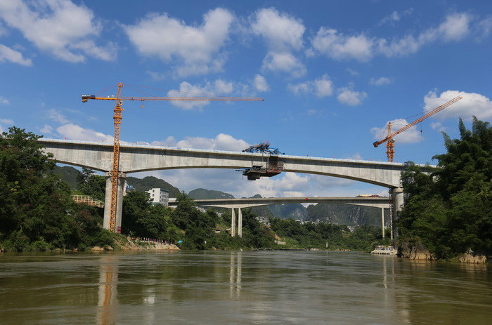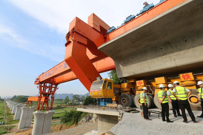 位于廣西境內(nèi)的貴南高鐵8標(biāo)段,橫跨河池都安、南寧馬山兩市兩縣。該標(biāo)段三座隧道貫通、9座橋梁下部結(jié)構(gòu)完工、國內(nèi)350公里高鐵跨度最大的純混凝土連續(xù)梁合龍,175萬方路基土石方施工結(jié)束,主體工程完成80%。