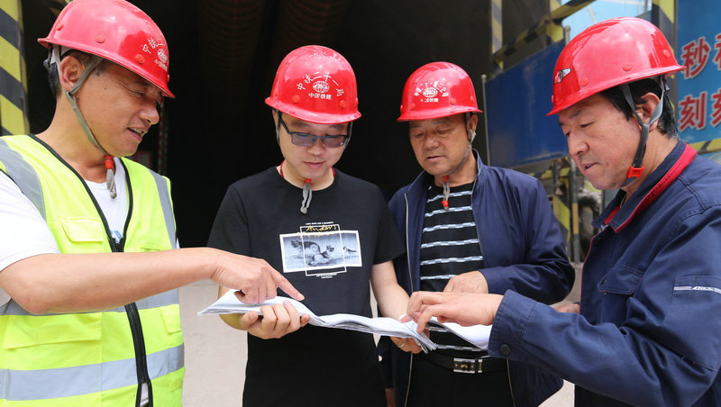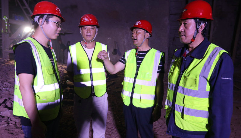 圖為隊長呂銀存(右二)在洞內(nèi)安排工作扎根一線 提升現(xiàn)場施工管理能力