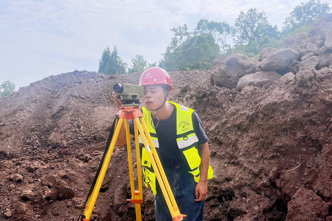 24歲青年小伙劉晨宇是該標段的測量員,自開工以來,劉晨宇和伙伴們完成了27個控制點平面復測、500多個主線匝道斷面復測、500多個改路斷面復測,190多個橋梁放點調(diào)查,全線四級水準測量,全線界樁復測及31個涵洞調(diào)查。