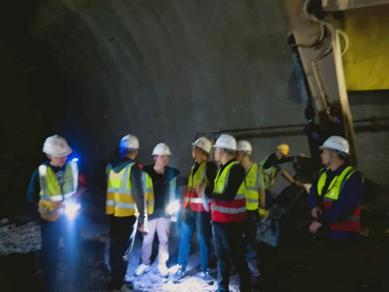 項目部施工的中梁山隧道進口第11次迎來百人觀摩團,圖為3月11日重慶交通大學(xué)隧道及軌道工程系大學(xué)生在中梁山隧道進口觀摩