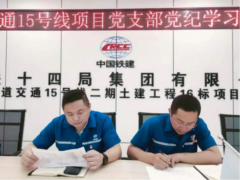 項目黨支部書記韓崇生(左)經(jīng)理阮超(右)按照要求組織紀(jì)檢學(xué)習(xí)、帶頭廉潔履職