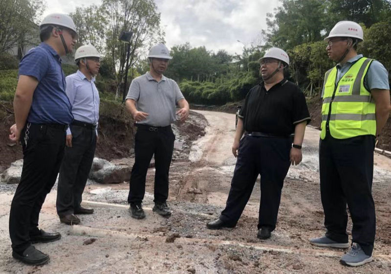 指揮長(zhǎng)李兵(右2)、黨工委書記王向平(右1)、副指揮長(zhǎng)陳華富(右3)、副指揮長(zhǎng)李燕斌(左2)在現(xiàn)場(chǎng)巡查研究有關(guān)問(wèn)題(張春攝)