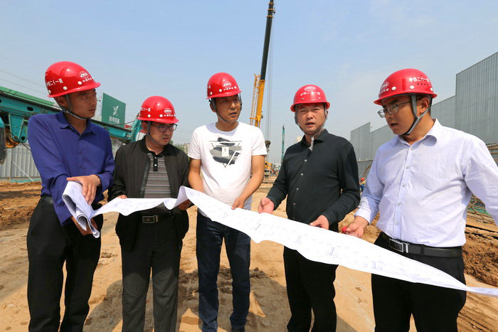鄭州310國道祥云路高架橋澆筑第一根樁基 高架橋樁基深達(dá)六、七十米,地質(zhì)為砂質(zhì)黃土、砂層、塊狀砂質(zhì)膠結(jié)層,鉆孔時樁基孔底沉渣厚,清孔時間長,鋼筋籠分節(jié)安裝時間長,對樁基成孔和質(zhì)量控制難度較大。胡湛和總工趙庚康、副經(jīng)理張宗舟立即采取措施,增加鋼筋安裝人手、增加鉆孔樁泥漿護(hù)壁,縮短樁基成孔等待時間,解決了這一難題。