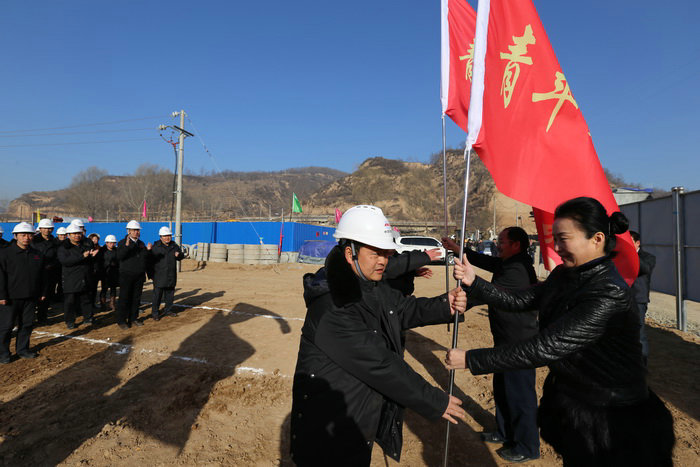 圖為集團公司工會領(lǐng)導(dǎo)向許寶勇青年突擊隊授旗
