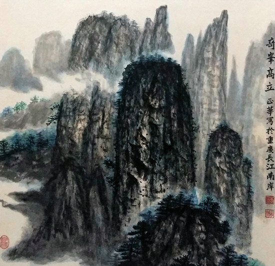 國(guó)畫(huà)作品注重詩(shī)畫(huà)意境、用筆功夫、筆墨氣韻、自然傳神、構(gòu)圖層次、厚重氣勢(shì)、書(shū)法鈐印等。作品吸收了黃賓虹積墨厚重寫(xiě)意,融入傳統(tǒng)與自然寫(xiě)生,蒼渾勁健,意境深遠(yuǎn),色彩豐富,詩(shī)書(shū)畫(huà)印合一,獨(dú)具風(fēng)格。詩(shī)聯(lián)書(shū)畫(huà)印作品多次獲全國(guó)大賽一等獎(jiǎng),多次由國(guó)家一級(jí)出版社出版。