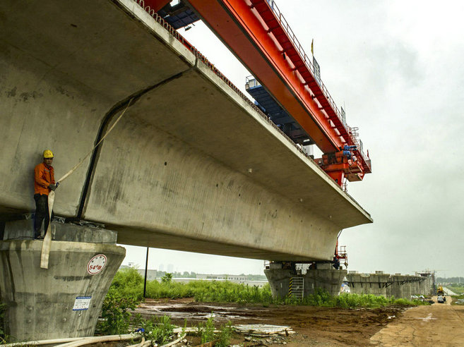 (黃黃高鐵蘄河特大橋200孔架設(shè)工人作業(yè)現(xiàn)場)