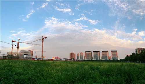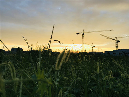 綠色環(huán)保工地在夕陽(yáng)下的繁忙
