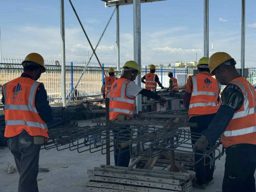 圖為兵團建工水電集團市政路橋公司第二筑路項目部預(yù)制蓋板鋼筋加工現(xiàn)場。工人們在酷暑的熱浪下如火如荼的加工鋼筋,為蓋板涵的施工提高施工效率、減少施工過程中的誤差,截至目前儲備鋼筋約80余噸、預(yù)制蓋板約百余塊。(汪文娟攝)