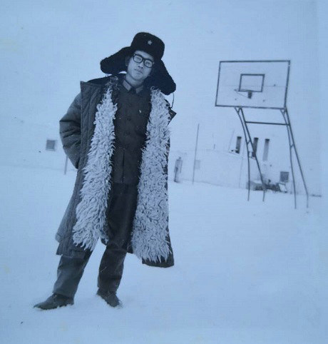 注:本詩填寫于1981年12月18日,當時在新疆庫爾勒北站道碴場(89322部隊5連),8月因父親病逝探家歸來后,被照顧到工地值夜班,天亮時看到天色陰沉,朦朧著庫爾勒的上空,是要下雪了,心情壓抑回班內(nèi)所填。抬望眼,烏云滾滾,心情悲切。