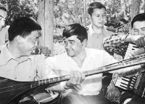 注:本詩寫于1981年5月23日,于新疆庫爾勒市火車北站道碴場(89322部隊5連),連隊的河對岸是個維吾爾族村莊,經(jīng)常有民族特色的冬不拉琴聲傳來,當時正是下班來到河邊洗擦澡與洗衣服,回班后寫下這二首小詩。