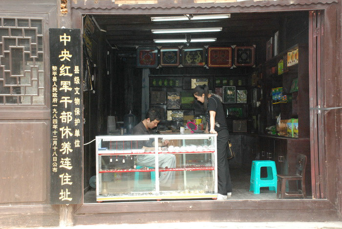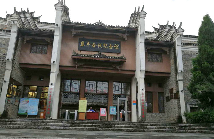 修葺一新的黎平會議紀(jì)念館  出了紀(jì)念館后門,正對面就是黎平會議會址,會址與紀(jì)念館僅十多米遠(yuǎn),一街之隔。黎平會議會址原為一民間宅院,建于清朝嘉慶年間,屬“前店后院”布局,建筑面積約800平方米,當(dāng)年黎平會議就是在這所普通的民居召開。會址正門門匾上有陳云手書的“黎平會議會址”,步入正門后,里面陳設(shè)有當(dāng)年開會的桌椅,作戰(zhàn)地圖,墻上掛有參加黎平會議的人員照片等,還有周恩來、朱德等人的住室。黎平會議會址位于黎平老城翹街,翹街亦屬中國歷史文化名街,街道五六米寬,東西長一公里左右,全部用青石板鋪就,拾階而上,與黎平會議會址相距不遠(yuǎn)的是當(dāng)年紅軍干部休養(yǎng)連住地。佇立在小街中間,看這已顯得滄桑凝重的黎平會議舊址及對面的黎平會議紀(jì)念館,再看看周圍古老低矮的建筑,依舊寧靜的老街,時光仿佛一下子停止,眼前浮現(xiàn)出當(dāng)年數(shù)萬紅軍將士在黎平的景象。