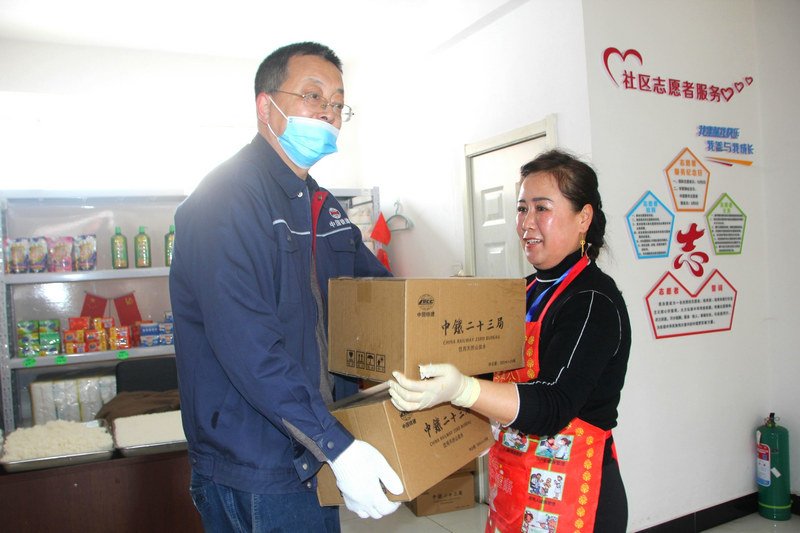 “盒飯來了,感謝中鐵二十三局的愛心奉獻(xiàn),志愿者可以吃上熱乎飯了”吉林省白山市江源區(qū)孫家堡子街道盛豐社區(qū)書記郝宏接過熱氣騰騰的米飯及礦泉水表達(dá)了由衷的謝意。
