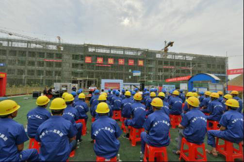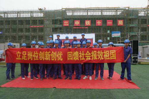 做承諾環(huán)節(jié),公司黨委副書記、工會主席趙小紅、項目經(jīng)理劉磊、書記李雁帶領(lǐng)項目員工紛紛在“銘記崢嶸歲月,爭做大國棟梁”的紅色橫幅上簽名,寫下莊嚴(yán)承諾。隨后,正式啟動“大干四季度勞動競賽活動”儀式,項目總工程師江永宣讀勞動競賽節(jié)點計劃,項目黨工委書記李雁宣讀大干四季度勞動競賽倡議書,項目經(jīng)理劉磊代表項目部進(jìn)行表態(tài),趙主席向青年突擊隊代表授旗,號召項目全體員工要確保項目建設(shè)目標(biāo)順利完成,為下半年施工大干奠定堅實基礎(chǔ)。