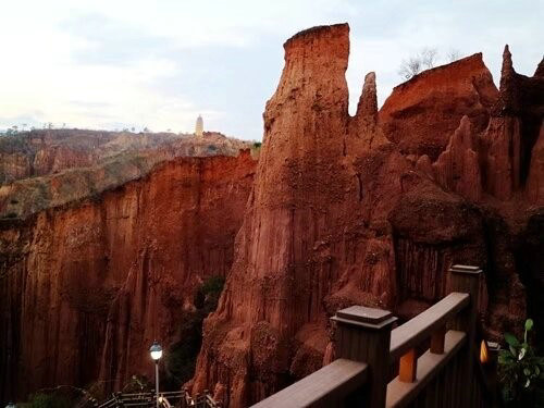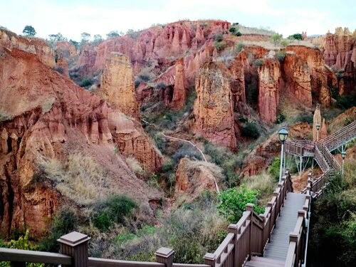 行在步道之間,猶如走進(jìn)了大自然雕塑的藝術(shù)魔宮,沿著步道在土林中漫游。穿越其間,仰頭可觀賞到“少女梳妝”、“嫦娥奔月”、“八仙過(guò)海”、“仙女下凡”、“戰(zhàn)馬騰空”、“雙獅望月”、“雄鷹展翅”等等奇異的造型,如同闖進(jìn)了神奇莫測(cè)的仙境。