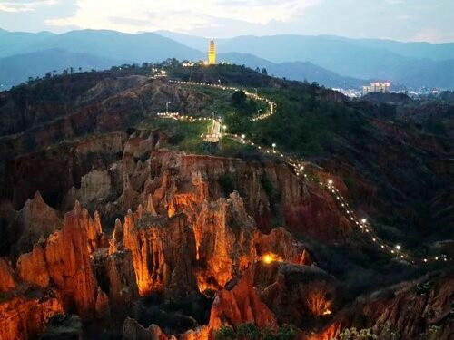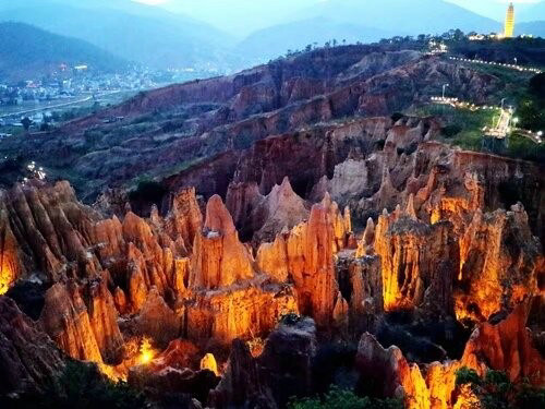 土林是一種獨(dú)特的流水侵蝕地貌,是水土流失現(xiàn)象造成的“美麗錯(cuò)誤”。她的景觀會(huì)在不同季節(jié)、不同時(shí)間、不同氣候、不同角度有不同的韻味。陽(yáng)光下的土林造型硬朗、醒目;雨霧中的土林若明若暗,朦朧含蓄;冬季的土林溫暖如春,夏季的土林炎熱酷暑。而且由于土林穩(wěn)定性差,易于流失,所以有些土柱今年似雞,明年似狗,充滿(mǎn)了變幻的美。土林是上天賜給南澗的一個(gè)寶貝,千百年來(lái),她一直在南澗縣城附近期待著人們?nèi)バ蕾p。