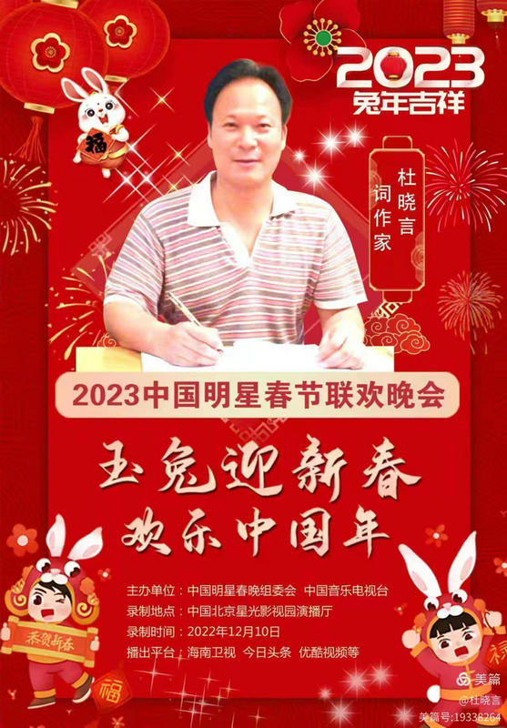 杜效言(杜曉言),軍旅詩詞、散文作家,新聞工作者,騰訊音樂人,中國音樂著作權(quán)協(xié)會(huì)會(huì)員,中國職工音樂家協(xié)會(huì)會(huì)員,中國職工攝影家協(xié)會(huì)會(huì)員,鐵路工程建設(shè)網(wǎng)通訊員。傳略收入《鄆城名人大詞典》《詞曲中國藝術(shù)人才庫》等。1962年11月山東鄆城生人?,F(xiàn)定居濟(jì)寧市。1981年10月參加鐵道兵,1984年1月隨鐵道兵集體兵轉(zhuǎn)工。迄今在央視、省市級(jí)電視臺(tái)演唱作詞歌曲20余首。在省部級(jí)以上刊物發(fā)表歌詞500余首。多首作詞歌曲在社會(huì)廣泛流傳,獲改編并獲獎(jiǎng)。著有多部歌詞集。