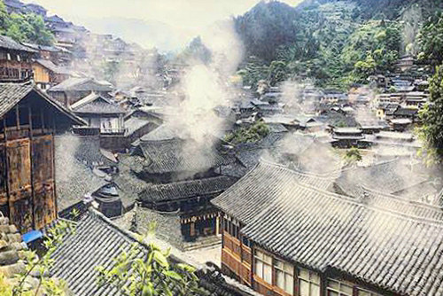 炊煙裊裊中暈染了天邊輪廓
