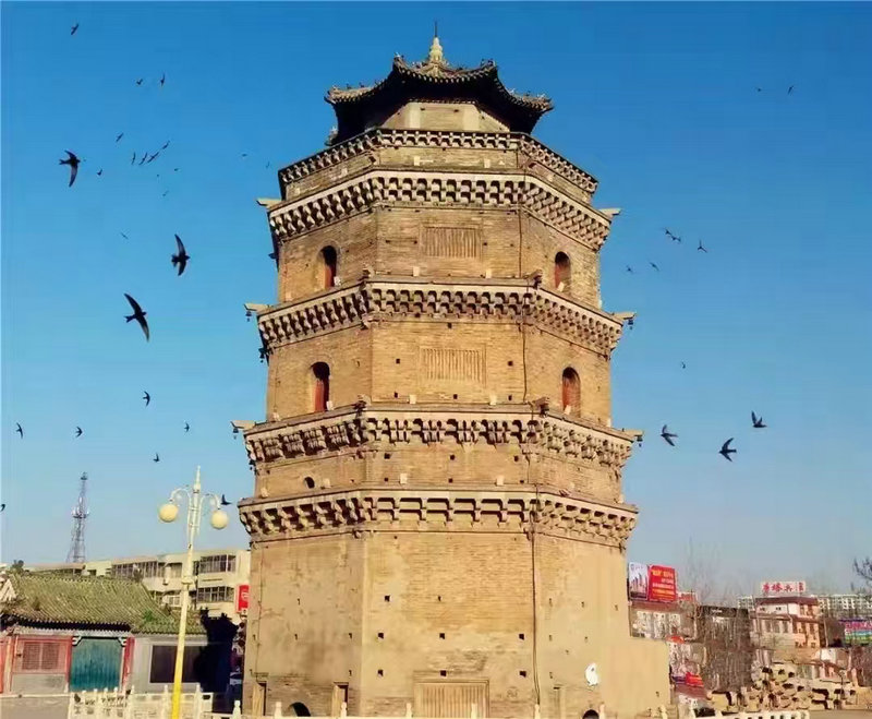風(fēng)從南邊刮過來,帶著泗水河的潮氣,混著鄆城的麥香。兩個家,就這么在風(fēng)里晃啊晃。興隆塔的影子斜斜鋪在地上,像條土路,一頭連著兗州的晨霧,一頭,拴著唐塔下的那聲蟬鳴。