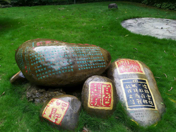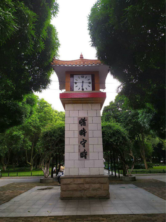 走在百色的街道上,看著工藝品店中美麗的民族服飾、手工繡球、壯錦、銅鼓等地方特色的文化遺產(chǎn),不禁為百色的多元民族民俗文化感到自豪。繼續(xù)漫步前行,來到了坐落在百色市右江區(qū)中山二路的人民公園。古樸的公園門樓安靜地聳立在傍晚的街區(qū),不多的居民與游人緩步行走在石板道上。公園不大,特有的植被高大、茂密,公園內(nèi)不多的游樂設(shè)施星布在道路兩側(cè)。在公園中心地帶的草地上,有幾塊百色印社雕刻的原石,刻有印社二十年軌跡、“百色起義”、“放翁鐵馬秋風(fēng)”等字。在公園正門內(nèi)有一個(gè)鐘塔,除了上面的鐘表外,在塔身上刻有“惜時(shí)守時(shí)”四個(gè)字。百色人民公園為周邊的民眾提供休閑休息的場所,沒有現(xiàn)代化的游樂設(shè)施,有的只是南疆特有的靜謐與沉靜。