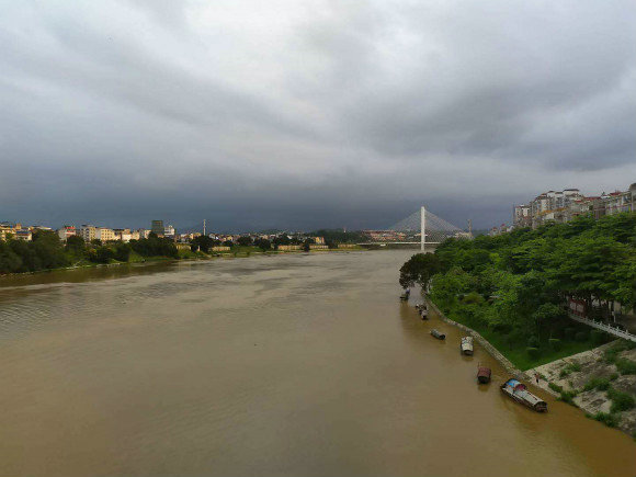沿著右江區(qū)那畢大道緩步前行,來到了那畢大橋,橋下便是匯入右江流域的澄碧河。澄碧河是右江較大的一只支流,于城區(qū)大碼頭匯入右江。橋下的河水有些混黃,流淌緩慢。石階上三兩游人或漫步交談、或駐足觀望,更有一當(dāng)?shù)嘏釉诤舆厼樾膼鄣拇蠊愤M(jìn)行刷洗。傍晚的澄碧河靜謐、安寧,遠(yuǎn)處烏云密布下的東合大橋給人堅(jiān)韌不屈、孤然傲立的感覺,河道上的漁船靜靜地停泊,等待著大雨過后的出航。右江,一條灘多水急、暴漲暴落、通航能力低的山區(qū)河流;一條在現(xiàn)代文明的發(fā)展進(jìn)程中凝聚了濃郁的革命氣息的河流;一條滋養(yǎng)著壯民族文化發(fā)祥地、壯族人民向往的精神家園及最古老歌圩的河流。右江,有著濃郁的厚重的歷史積淀、紅色氣息、民間民俗文化的精神烙印。