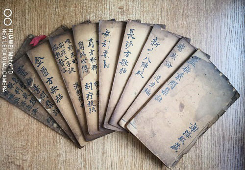 1984年1月1日,我所服役的鐵道兵部隊集體轉(zhuǎn)工并入鐵道部,我也由單位先后送到焦作中醫(yī)藥學(xué)校、河南中醫(yī)學(xué)院進(jìn)行了系統(tǒng)性的醫(yī)學(xué)專業(yè)學(xué)習(xí),正式考取了中醫(yī)師。雖在后來的企業(yè)幾次改制變動中,兼任過段工會主任、干過指揮部辦公室主任,項目部書記等職,但立志懸壺濟世與治病救人的初心沒有改變。每次翻開這些舊醫(yī)書時,就會浮現(xiàn)出父親坐在火爐邊看書的身影,也更加覺得它的珍貴。為此我每次回老家文山村外魯時,都是會特意從楠林橋下車,再步行翻越銅盆嶺,走走父親帶我走過的鄉(xiāng)間小路,也會徒步登上芭蕉嶺到楊芳街,去看看我的舅舅、舅媽、老表們與那有著江南特色的謝氏民宅,見到那古香古色的老屋時,總能勾起我許多兒時的回憶。記得外婆裹著小腳,晚年眼睛基本失明,每次去了她都要從頭到腳地全身摸一遍,還一邊念叨著,又長了點,或是胖了瘦了的。其實在我?guī)С鰜淼募也乩厢t(yī)書中,有一半以上是我外公留下的,據(jù)說當(dāng)時每本需要一塊大洋才能買到,等于其時一擔(dān)谷的價值。