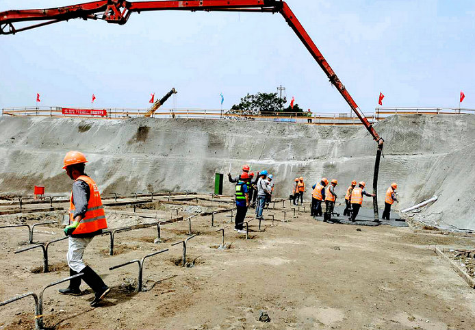 5月25日伴隨著泵車的轟鳴聲,中鐵一局三公司承建的徐連客專東海站前樞紐工程項(xiàng)目底板墊層開始澆筑。