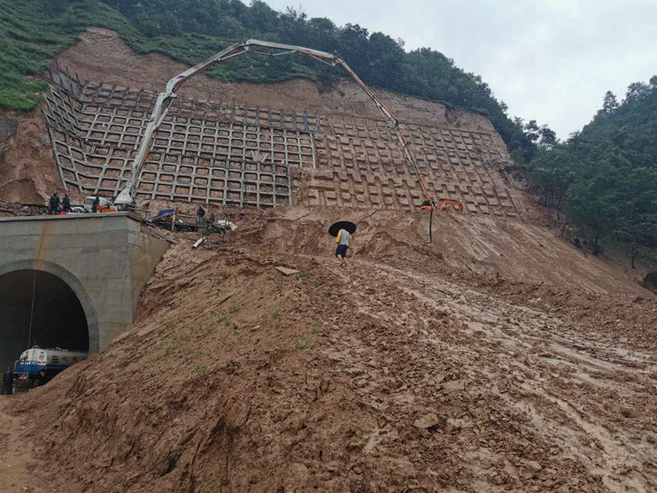 高樓塬隧道施工已接近尾聲,現(xiàn)已進行的是隧道進口框架梁及邊坡養(yǎng)護施工。而高樓塬隧道地處溝壑區(qū),地形復雜,與地面高低落差大,加之塬邊溝壑地質(zhì)發(fā)育不良,溝壑兩側(cè)坡面土質(zhì)松散,一旦遇上持續(xù)降雨就會出現(xiàn)水土流失、滑坡、甚至排水溝斷裂,骨架護坡坍塌等嚴重現(xiàn)象。